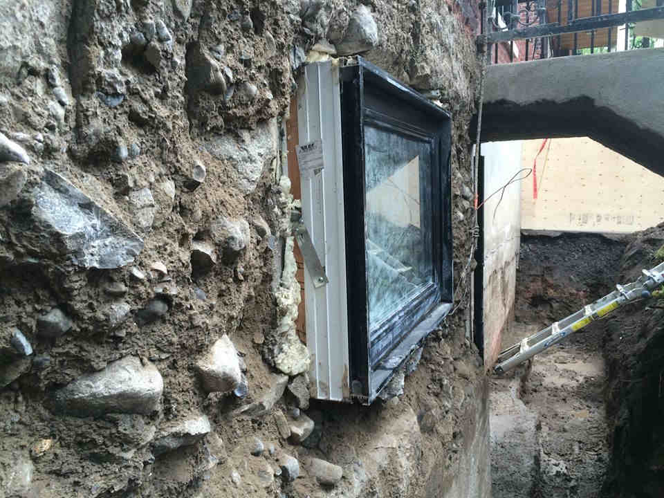 Réparer une fissure problématique qui représente la seule source d’infiltration d’eau est un bon exemple où la réparation locale est une bonne option. Une intervention extérieure sur 8 pieds linéaires est assez commune pour réparer et protéger cette région en particulier. Il peut également s’agir d’une plus grosse section telle que deux façades du mur de fondations qui sont en piètre état contrairement aux autres qui sont en bon état. Selon la situation, il sera possible d’installer un système de drain français partiel.